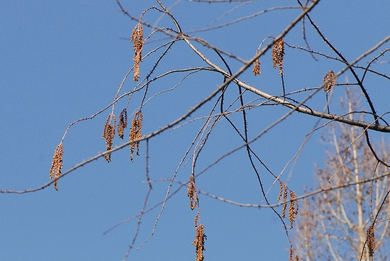 ハリコは、公園のメタセコイアです。 生きた化石と言われる樹木です。 秋に蕾を作りますが、落葉すると、枝に小さなゴミがたくさん着いているように見えます。 成熟するのは翌春で、今咲いていますが地味なので目立ちません。 花を着けた枝と、見上げた樹です。 |